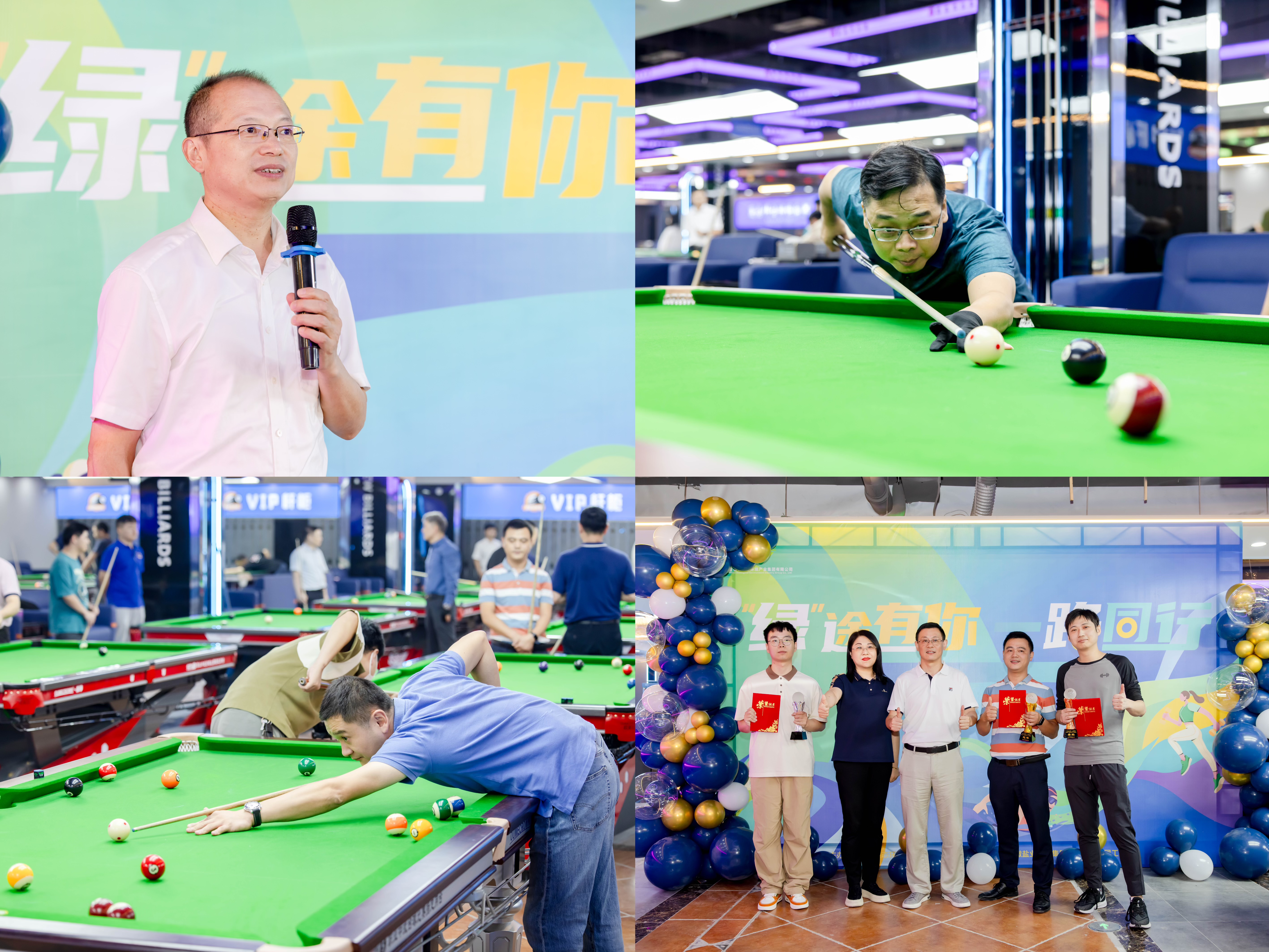 在熱烈慶祝中華人民共和國成立75周年、安徽省生態(tài)環(huán)境產(chǎn)業(yè)集團掛牌組建一周年之際,為營造歡慶氛圍,凝聚干事創(chuàng)業(yè)正能量,9月29日下午,省生態(tài)環(huán)境集團“‘綠’途有你,一路同行”系列主題文體活動正式拉開帷幕,第二屆“徽鹽地產(chǎn)杯”臺球比賽在合肥濱湖成功舉辦,集團公司黨委副書記張小忠出席開幕式并致辭,集團公司黨委委員、紀委書記羅守斌出席活動并為比賽開球,來自集團公司本部及所屬各單位50余名臺球愛好者踴躍參賽。