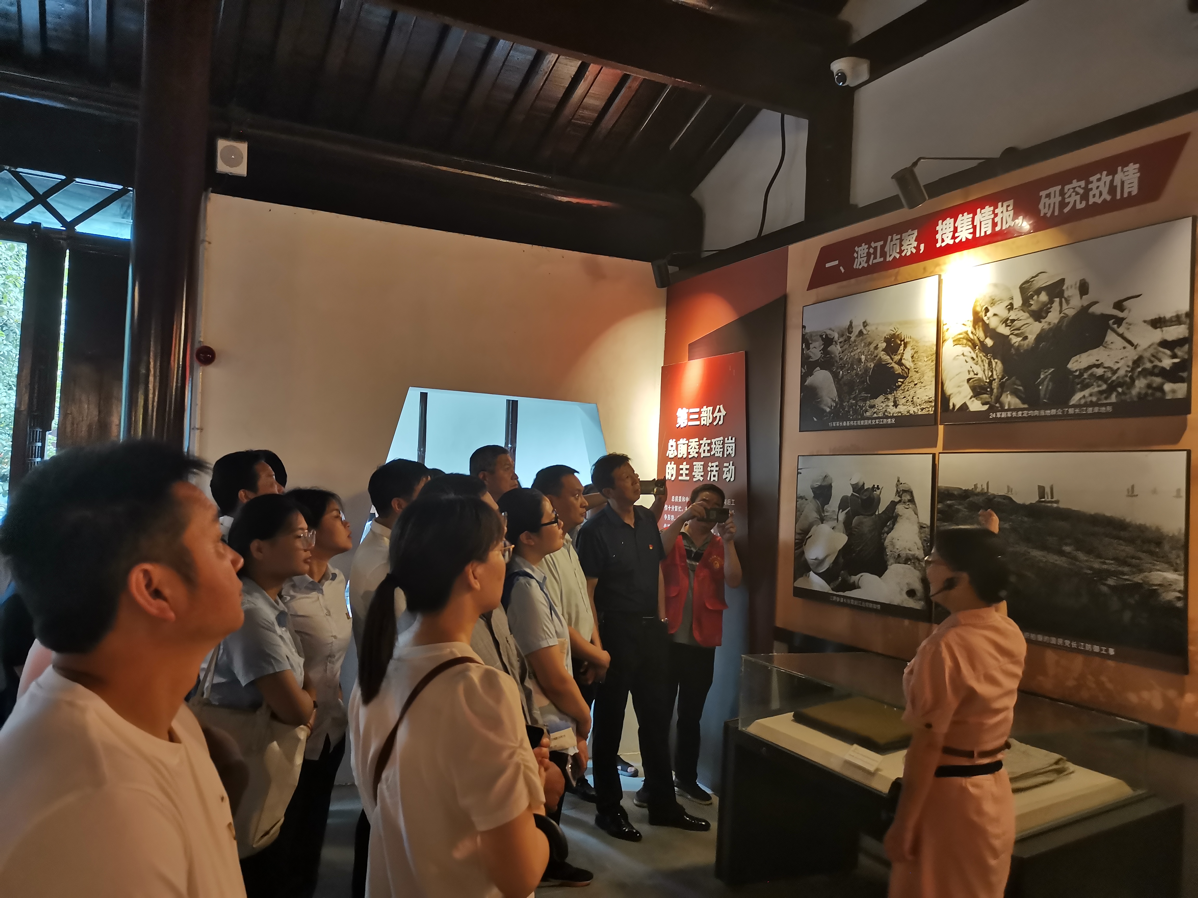黨員們先后參觀了總前委參謀處舊址、渡江頌書畫展廳、瑤崗紅色文化長(zhǎng)廊等展廳,在一件件浸潤(rùn)著革命先烈智慧與汗水的文物、一組組記錄著偉大時(shí)刻的照片前,大家駐足觀看,深刻體會(huì)革命先輩們堅(jiān)定的革命信仰、奮戰(zhàn)到底的大無(wú)畏精神,深刻感念“聽黨話、跟黨走、念黨恩”的樸素情懷。