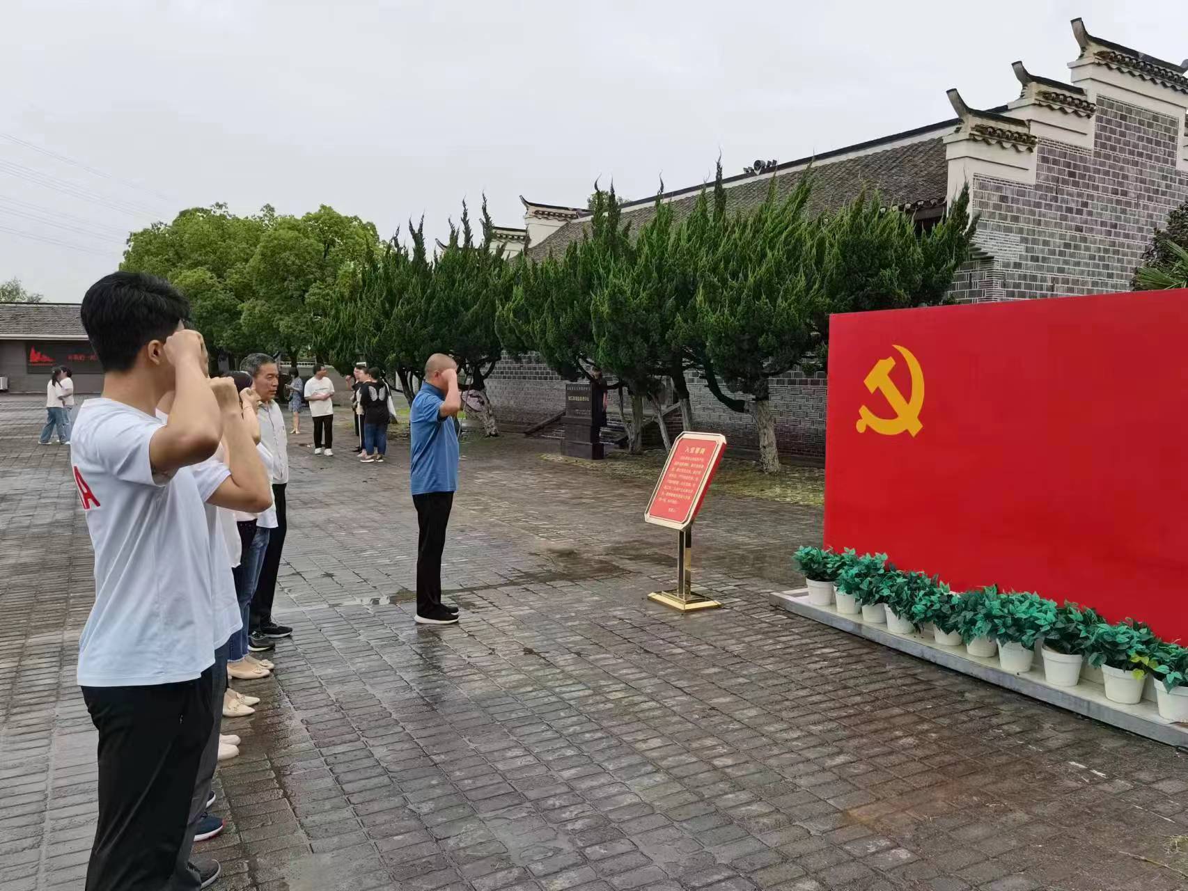 在渡江戰(zhàn)役總前委參謀處舊址廣場(chǎng)上,全體黨員重溫了入黨誓詞,面向鮮紅的中國(guó)共產(chǎn)黨黨旗,支部書記領(lǐng)誓,其他同志高舉右拳,鄭重宣誓,誓言聲鏗鏘有力,句句入心。