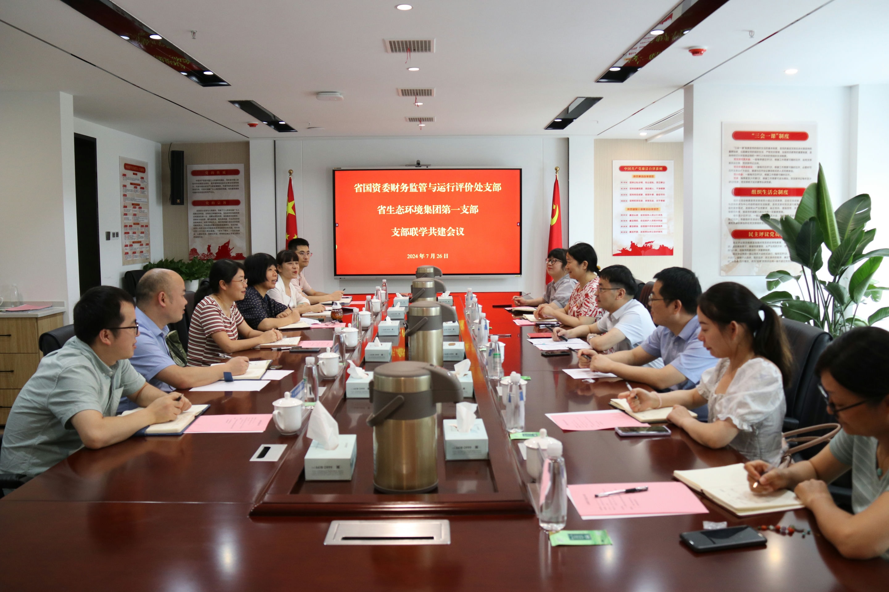 7月26日下午,省國資委財(cái)管運(yùn)行處黨支部與省生態(tài)集團(tuán)本部第一黨支部聯(lián)合舉辦了主題為“黨紀(jì)共學(xué)鑄忠誠,業(yè)財(cái)融合促發(fā)展”的黨建共建聯(lián)學(xué)活動(dòng)。省國資委財(cái)務(wù)監(jiān)管與運(yùn)行評(píng)價(jià)處黨支部書記、處長陳兵,省生態(tài)環(huán)境集團(tuán)總會(huì)計(jì)師汪海燕,以及雙方黨支部部分黨員代表參加活動(dòng)。