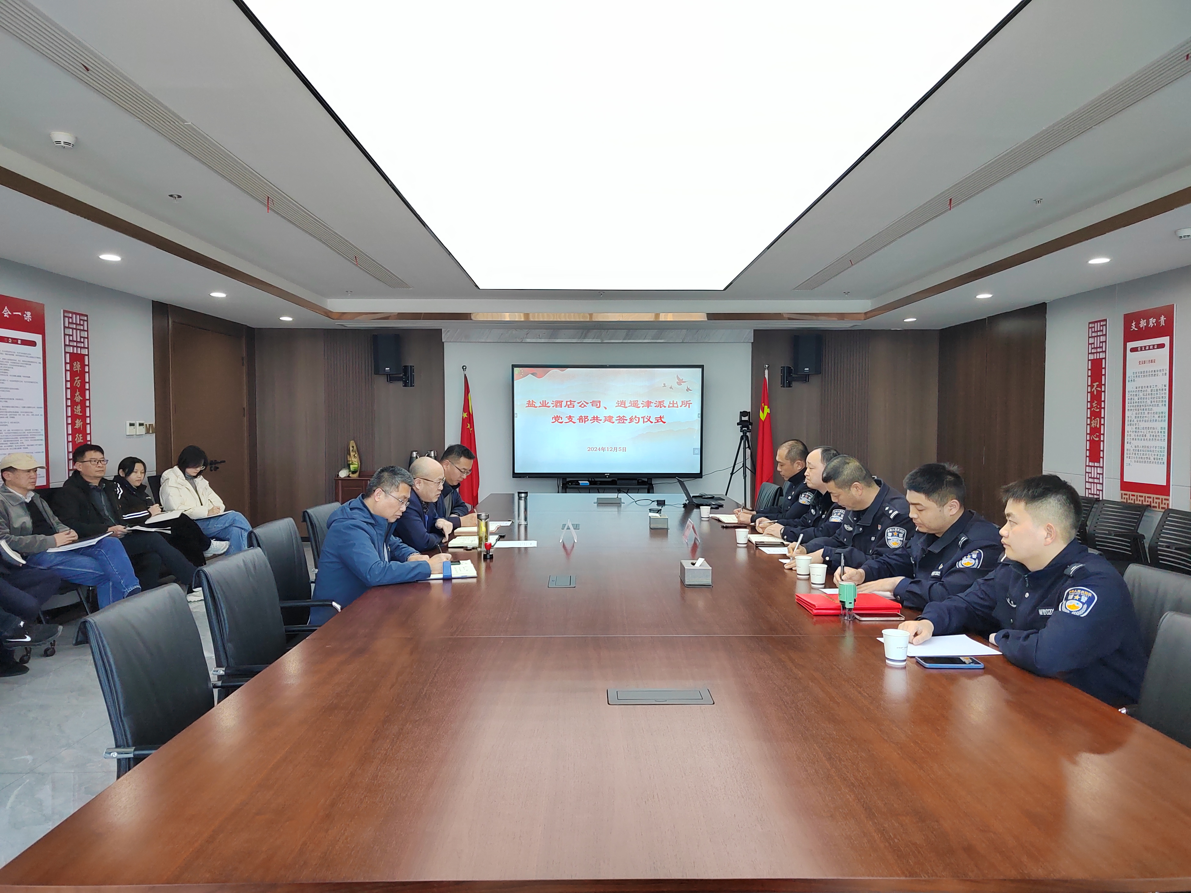 12月5日下午,酒店公司黨支部與逍遙津派出所黨支部聯(lián)合開(kāi)展了黨建共建活動(dòng),酒店公司全體黨員、逍遙津派出所黨員民警共20余人參加。