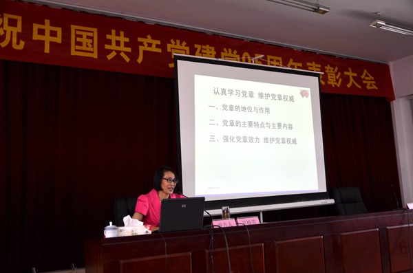 吳梅芳教授為大家作了題為“認(rèn)真學(xué)習(xí)黨章、維護(hù)黨章權(quán)威”的專題黨課。她從黨章的地位和作用、黨章的主要特點(diǎn)與主要內(nèi)容以及強(qiáng)化黨章效力、維護(hù)黨章權(quán)威等方面詳細(xì)解讀了黨章的總綱、條文內(nèi)容與邏輯結(jié)構(gòu)。她用樸實(shí)的言語(yǔ)、典型的事例全面系統(tǒng)的解讀了黨章的地位和作用、黨章主要特點(diǎn)和主要內(nèi)容,詮釋了認(rèn)真學(xué)習(xí)黨章、嚴(yán)格遵守黨章的重要性,闡述了強(qiáng)化黨章效力、維護(hù)黨章權(quán)威的現(xiàn)實(shí)意義。