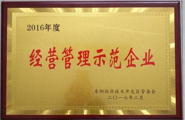 阜陽(yáng)市公司榮獲阜陽(yáng)市經(jīng)濟(jì)技術(shù)開(kāi)發(fā)區(qū)“經(jīng)營(yíng)管理示范企業(yè)”稱(chēng)號(hào)