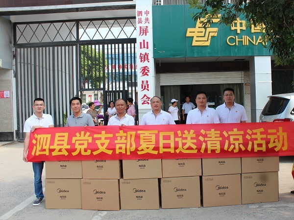 炎炎夏日送清涼,黨員行動在路上,為感謝老業(yè)主對徽鹽·虹都府項目的支持與厚愛,泗縣黨支部結(jié)合公司經(jīng)營發(fā)展互動的思想,開展“夏日送清涼活動”。
