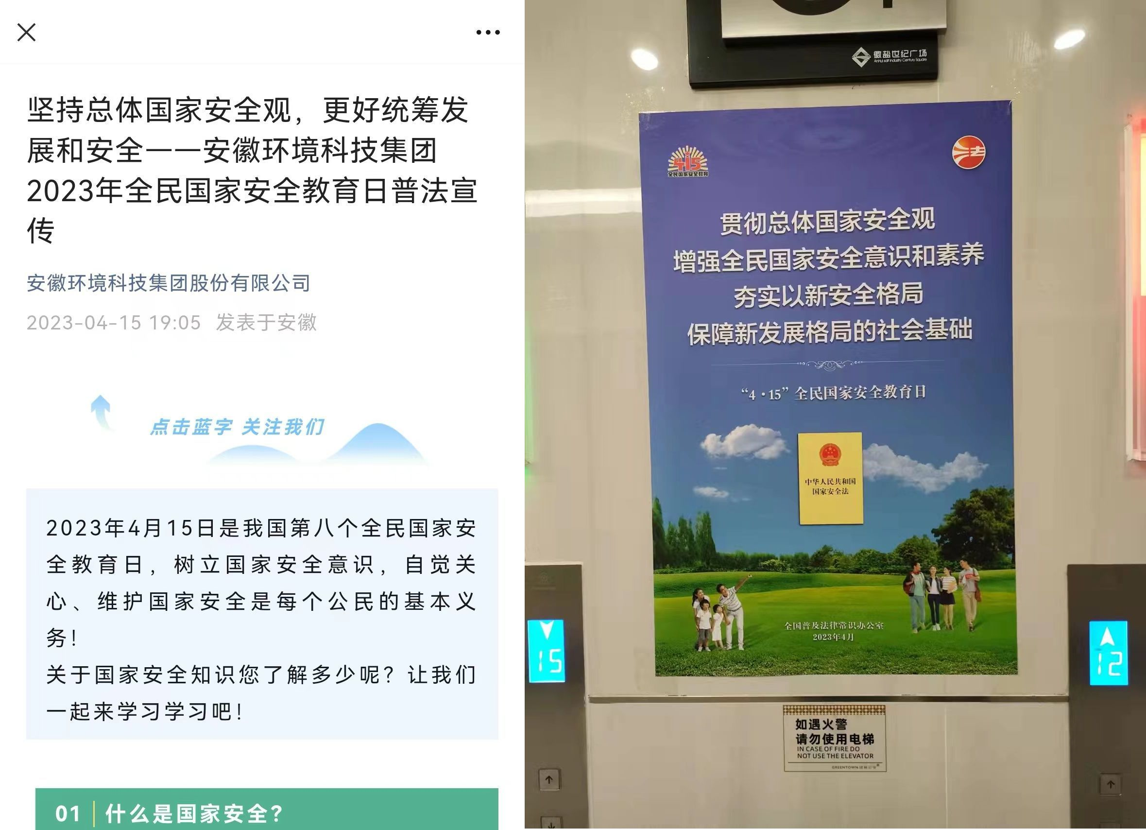 環(huán)境公司、發(fā)展公司、地產(chǎn)集團在微信公眾號、官網(wǎng)政策法規(guī)平臺上傳國家安全相關(guān)法律法規(guī),在辦公場所張貼宣傳海報。