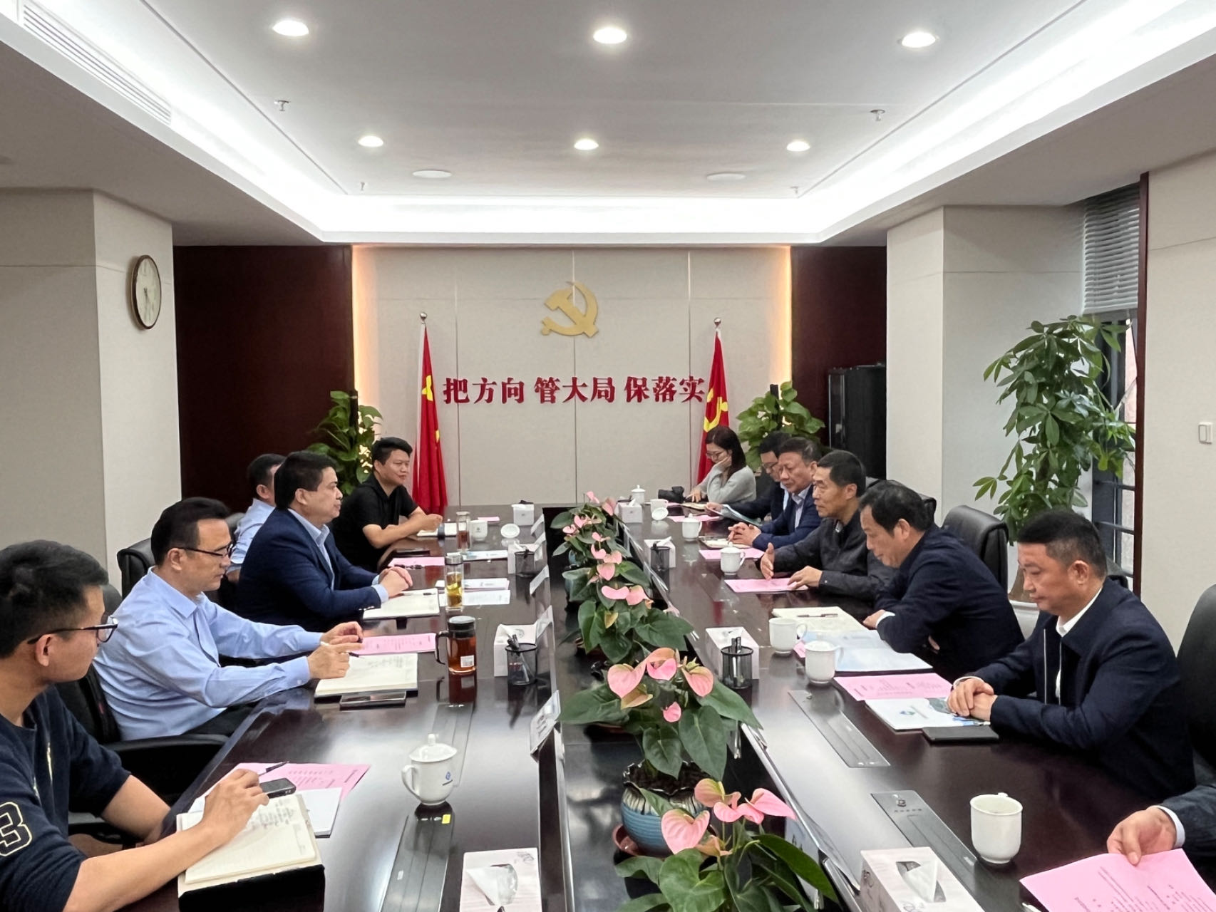 10月7日,省環(huán)保聯(lián)合會(huì)主席張杰到集團(tuán)調(diào)研,省生態(tài)環(huán)境集團(tuán)黨委書記、董事長羅太忠,黨委副書記、總經(jīng)理、董事王思軍出席調(diào)研座談會(huì)。