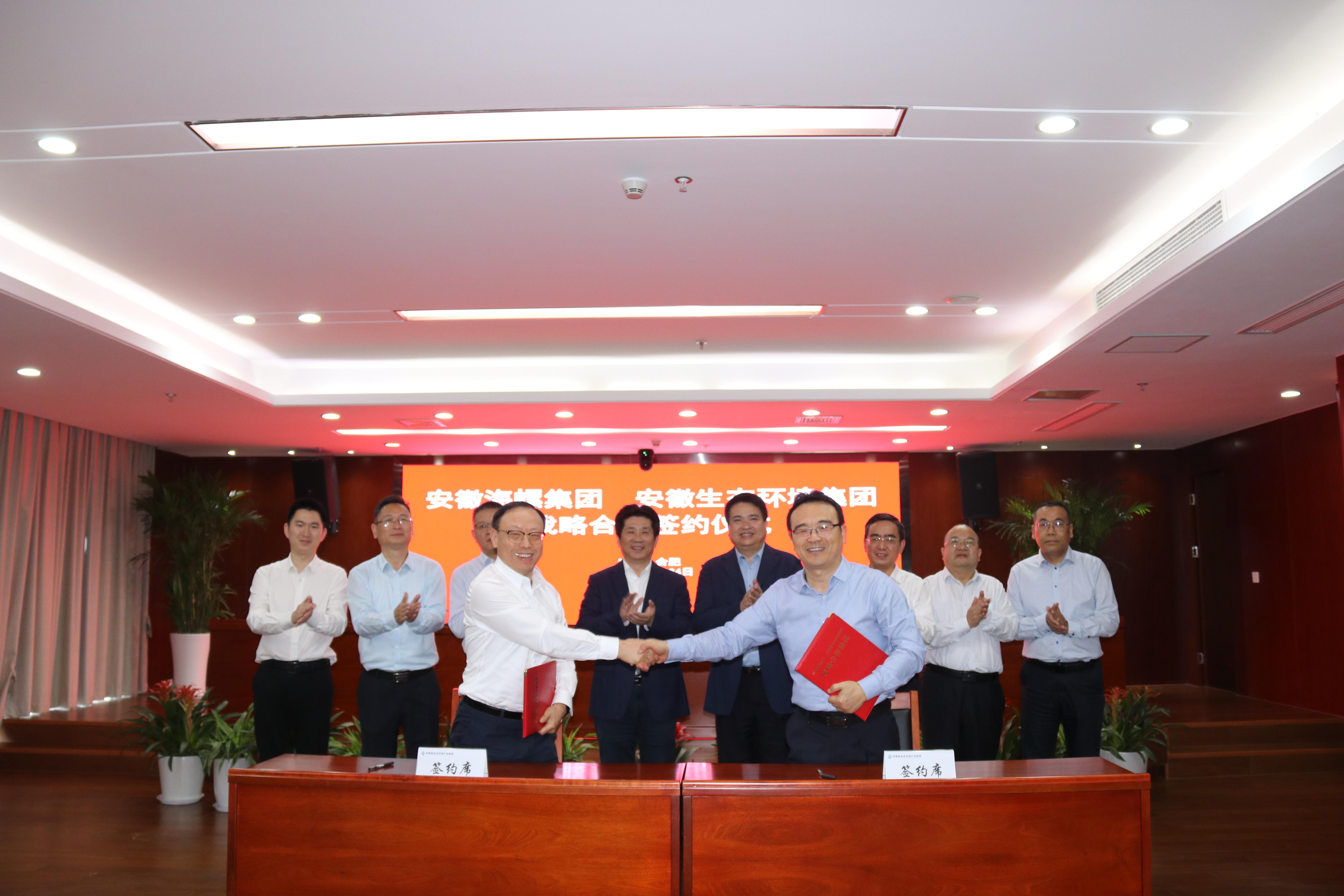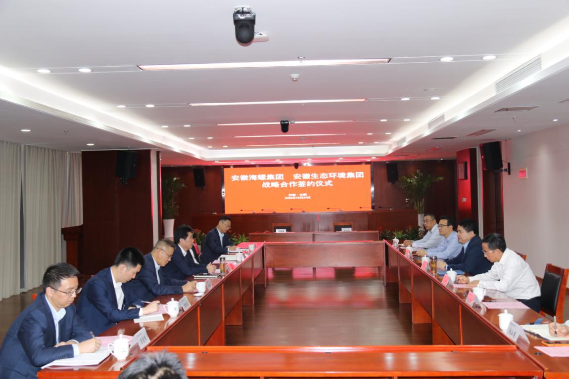 省生態(tài)環(huán)境集團黨委委員、副總經(jīng)理王奇,海螺集團黨委委員、副總經(jīng)理吳斌代表雙方簽署戰(zhàn)略合作協(xié)議。安徽環(huán)境科技集團、安徽順朝公司、海螺水泥、海螺環(huán)保以及雙方有關(guān)部門負責同志參加會議。