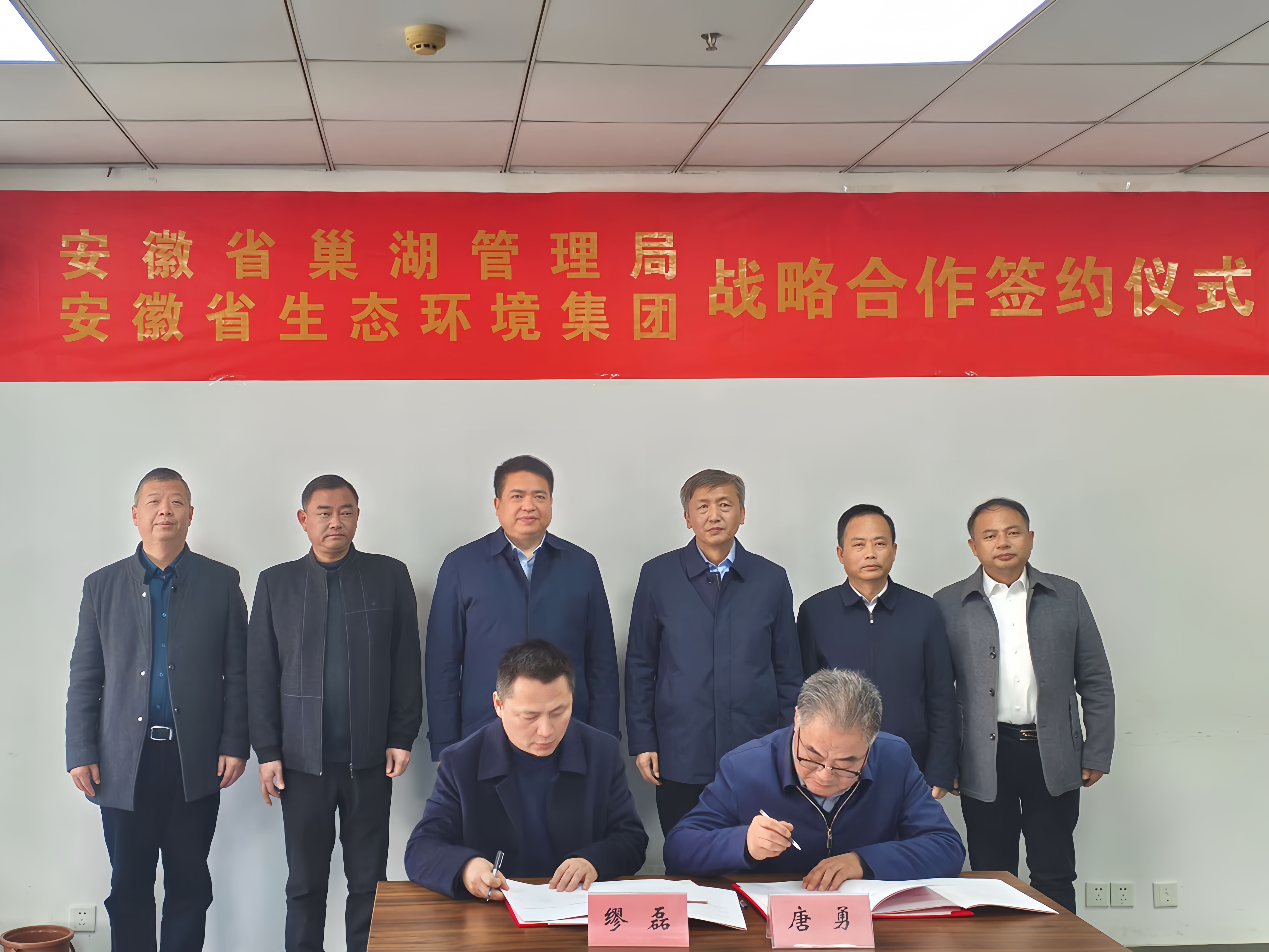 集團(tuán)公司黨委委員、副總經(jīng)理繆磊,省巢湖管理局黨委委員、副局長(zhǎng)唐勇代表雙方簽訂戰(zhàn)略合作協(xié)議,環(huán)境科技集團(tuán)、生態(tài)修復(fù)公司以及雙方有關(guān)部門負(fù)責(zé)同志參加簽約儀式。