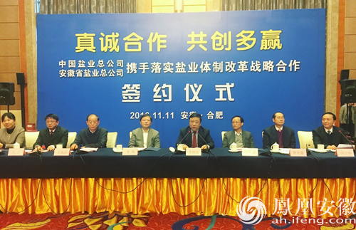 2016年11月11日,安徽省鹽業(yè)總公司與中國鹽業(yè)總公司在合肥簽署戰(zhàn)略合作協(xié)議。安徽省國資委、經(jīng)信委等部門領(lǐng)導(dǎo),中國鹽業(yè)總公司黨委書記、董事長李耀強,安徽省鹽業(yè)總公司黨委書記、總經(jīng)理詹先豪等領(lǐng)導(dǎo)共同出席簽約儀式。中國鹽業(yè)總公司所屬中鹽上海、中鹽安徽、中鹽長江、中鹽金壇、中鹽新干、中鹽舞陽等二級企業(yè)主要領(lǐng)導(dǎo)也共同參與了此次活動。