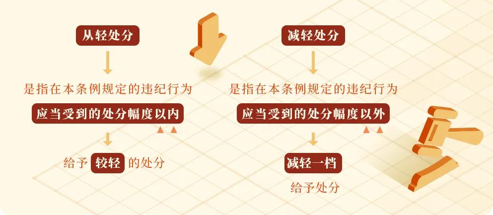 《中國共產(chǎn)黨紀(jì)律處分條例》規(guī)定有下列行為之一的,可以從輕或者減輕處分: (一)主動交代本人應(yīng)當(dāng)受到黨紀(jì)處分的問題。 “主動交代”是指涉嫌違紀(jì)的黨員在組織談話函詢、初步核實前向組織交代自己的問題,或者在談話函詢、初步核實和立案審查期間交代組織未掌握的問題。 (二)在組織談話函詢、初步核實、立案審查過程中,能夠配合核實審查工作,如實說明本人違紀(jì)違法事實。 這種情形是指被審查黨員在組織談話函詢、初步核實、立案審查過程中,如實說明組織已經(jīng)掌握的本人違紀(jì)違法事實。 (三)檢舉同案人或者其他人應(yīng)當(dāng)受到黨紀(jì)處分或者法律追究的問題,經(jīng)查證屬實,或者有其他立功表現(xiàn)。 “同案人”指與被審查人共同參與、實施了違紀(jì)行為的人,其中既包括黨員和黨的組織,也包括非黨員和非黨組織。 “其他人”指沒有與被審查人共同參與、實施違紀(jì)行為的人,既包括黨員和黨的組織,也包括非黨員和非黨組織。 “有其他立功表現(xiàn)”,是指提供其他案件的重要線索,阻止他人違法犯罪活動,協(xié)助抓捕其他職務(wù)犯罪案件被調(diào)查人、犯罪嫌疑人(包括同案犯),為國家挽回?fù)p失等情形。 (四)主動挽回?fù)p失、消除不良影響或者有效阻止危害結(jié)果發(fā)生。 “主動挽回?fù)p失”,是指違紀(jì)黨員在其實施的違紀(jì)行為已經(jīng)造成損失的情況下,主動采取有效措施,挽回?fù)p失的行為。 “消除不良影響”,是指違紀(jì)黨員在其違紀(jì)行為已經(jīng)造成不良影響的情況下,主動采取彌補措施,消除影響的行為。 “有效阻止危害結(jié)果發(fā)生”,是指違紀(jì)黨員在已著手實施違紀(jì)行為,但尚未造成危害結(jié)果的情況下,主動放棄繼續(xù)實施違紀(jì)行為,并主動采取積極措施阻止了危害結(jié)果的發(fā)生。 (五)主動上交或者退賠違紀(jì)所得。 這種情形是指主動將違紀(jì)所得上交組織。不包括將違紀(jì)所得退回送禮人等情形。 (六)黨內(nèi)法規(guī)規(guī)定的其他從輕或者減輕處分情形。