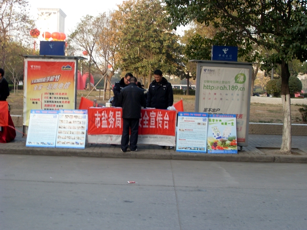 在本次活動(dòng)中,阜陽(yáng)市局設(shè)立宣傳咨詢臺(tái),宣傳展架4個(gè),擺放精心準(zhǔn)備的宣傳資料和傳單,展示近期在市場(chǎng)查獲得各類假冒鹽品,現(xiàn)場(chǎng)接受市民咨詢散發(fā)宣傳單300余份,向群眾宣傳普及鹽業(yè)法規(guī),并推出了現(xiàn)場(chǎng)教市民辨別真假碘鹽的活動(dòng),咨詢臺(tái)前觀看宣傳圖版和前來咨詢的群眾絡(luò)繹不絕,廣大市民對(duì)國(guó)家為確保民生,食鹽專營(yíng)的政策深表理解和支持。市領(lǐng)導(dǎo)對(duì)宣傳點(diǎn)進(jìn)行慰問檢查時(shí),對(duì)阜陽(yáng)市的鹽政管理給予了充分肯定和認(rèn)可,并鼓勵(lì)大家再接再厲再創(chuàng)佳績(jī)。