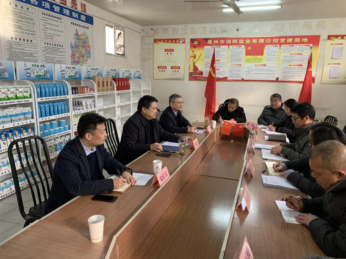 12月12日下午,省生態(tài)環(huán)境集團(tuán)黨委書記、董事長(zhǎng)羅太忠到渦陽縣鹽業(yè)公司宣講習(xí)近平總書記考察安徽重要講話精神。
