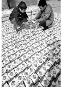 今年5月起,蒙城縣鹽務(wù)局鹽政稽查大隊(duì)和公安部門聯(lián)手,歷時(shí)5個(gè)多月,破獲一起加工銷售假冒綠色食品鹽的團(tuán)伙案,抓獲違法犯罪嫌疑人12人,案件涉及假冒綠色食品鹽600余噸。該案涉及皖蘇豫三省以及蒙城、亳州等六縣(市),時(shí)間跨度達(dá)6年之久。圖為11月6日,蒙城縣鹽政執(zhí)法人員在查看清點(diǎn)收繳的私鹽。