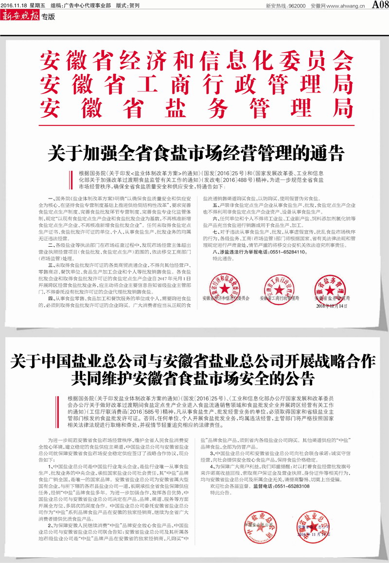 安徽省鹽務(wù)局涉鹽違法舉報(bào)電話(huà)是0551-65284110,歡迎廣大群眾監(jiān)督舉報(bào)。