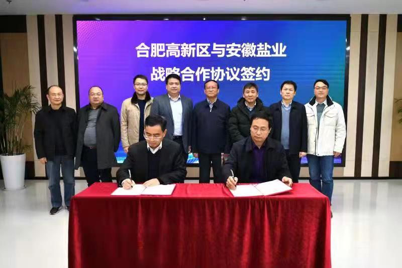 為加快省生態(tài)環(huán)境產(chǎn)業(yè)集團(tuán)組建,推進(jìn)集團(tuán)產(chǎn)業(yè)發(fā)展,2021年12月31日下午,省鹽業(yè)集團(tuán)與合肥市高新區(qū)簽署了戰(zhàn)略合作協(xié)議。省國(guó)資委副主任、黨委委員、一級(jí)巡視員葉傳柏,省生態(tài)環(huán)境廳二級(jí)巡視員阮敏,省鹽業(yè)集團(tuán)黨委書記、董事長(zhǎng)羅太忠出席簽約儀式。