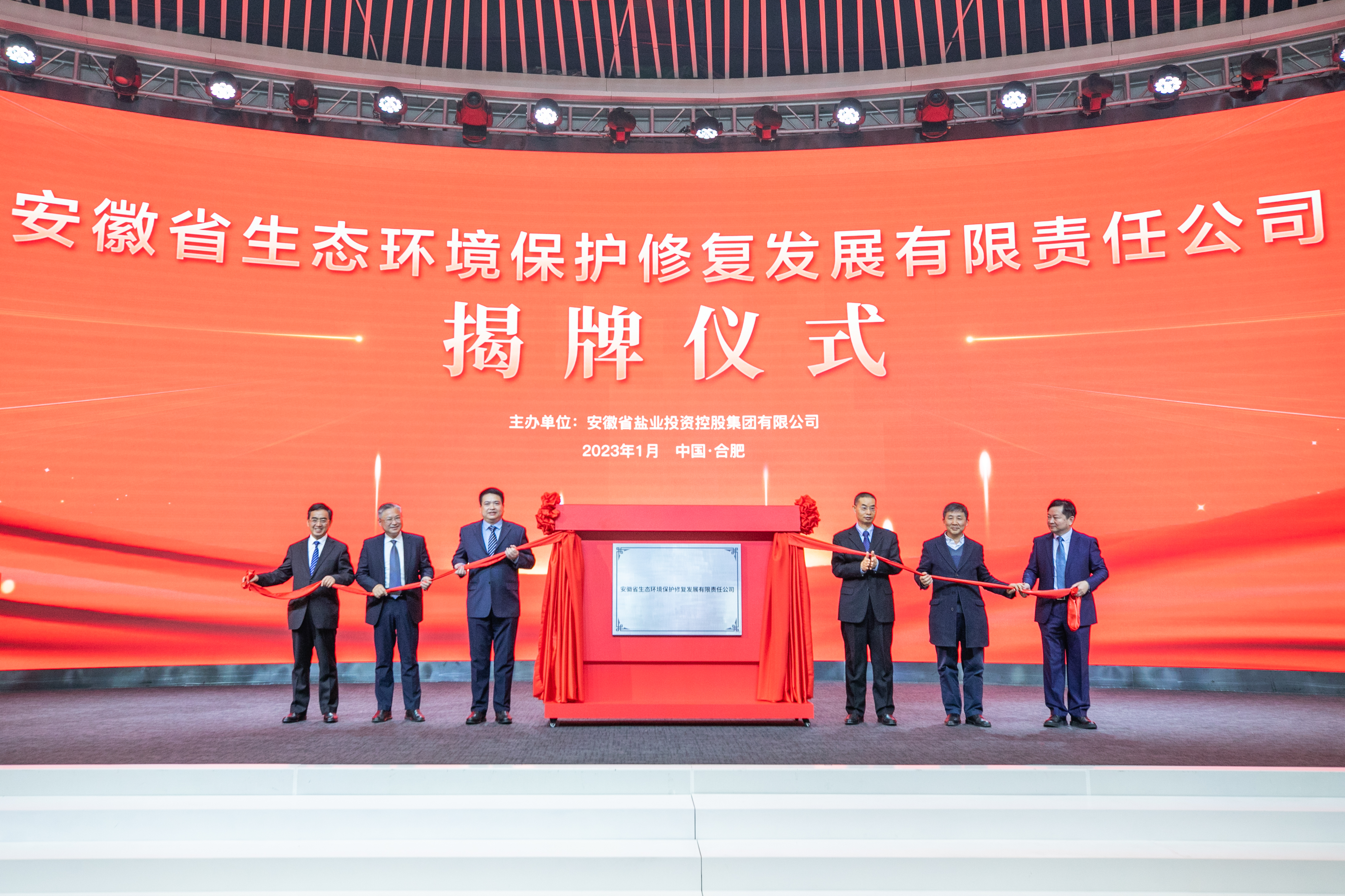 1月11日上午,安徽省生態(tài)環(huán)境保護(hù)修復(fù)發(fā)展有限責(zé)任公司揭牌儀式在合肥市高新區(qū)中安創(chuàng)谷科技園全球路演中心舉行。省自然資源廳一級(jí)巡視員夏炎,省生態(tài)環(huán)境廳二級(jí)巡視員阮敏,合肥市高新區(qū)黨工委書(shū)記、管委會(huì)主任宋道軍,省鹽業(yè)集團(tuán)黨委書(shū)記、董事長(zhǎng)羅太忠,黨委副書(shū)記、總經(jīng)理、董事王思軍,安徽省生態(tài)環(huán)境保護(hù)修復(fù)發(fā)展有限責(zé)任公司執(zhí)行董事、總經(jīng)理王剛出席儀式并為公司揭牌。儀式由王思軍主持。
