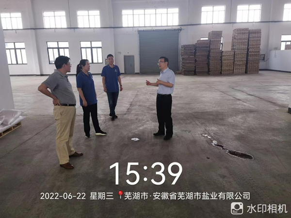 王奇現(xiàn)場檢查了蕪湖公司安全生產制度建設情況,實地查看了倉庫鹽品堆碼、消防安全設施配備以及叉車操作人員持證上崗等情況,并與蕪湖公司領導班子進行座談。
