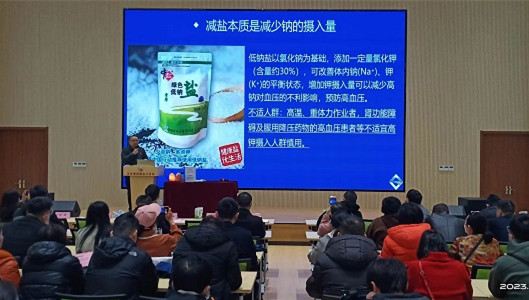 市鹽業(yè)公司營(yíng)銷(xiāo)中心方巖副主任用通俗易懂的語(yǔ)言、生動(dòng)細(xì)致的事例,以圖文并茂的方式講授了《食鹽安全與健康》專(zhuān)題講座,講解科學(xué)補(bǔ)碘、健康減鹽的意義。同時(shí),還針對(duì)網(wǎng)絡(luò)謠言進(jìn)行了辟謠、介紹科學(xué)減鹽新理念、推薦食用中鹽綠色低鈉鹽。