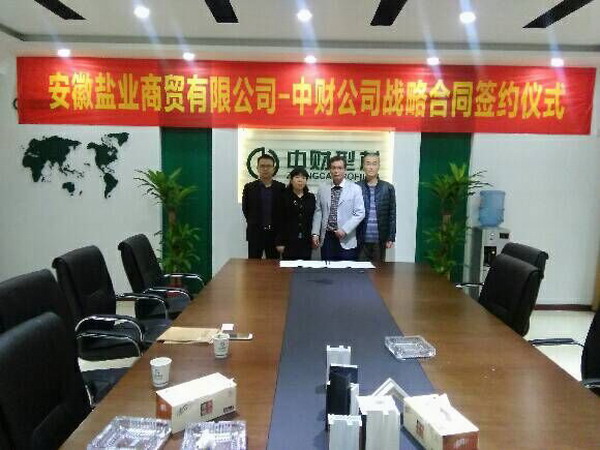 為了擴大經(jīng)營領(lǐng)域名尋求新的經(jīng)濟增長點,提升市場競爭力,安徽鹽業(yè)商貿(mào)公司經(jīng)過市場調(diào)研、廠家考察及反復(fù)洽談,于2015年11月份分別與山東華建鋁業(yè)集團有限公司及浙江中財型材有限公司簽訂門窗型材戰(zhàn)略合作協(xié)議,旨在全力服務(wù)于安徽鹽業(yè)地產(chǎn)項目及以外的地產(chǎn)市場的開拓經(jīng)營。