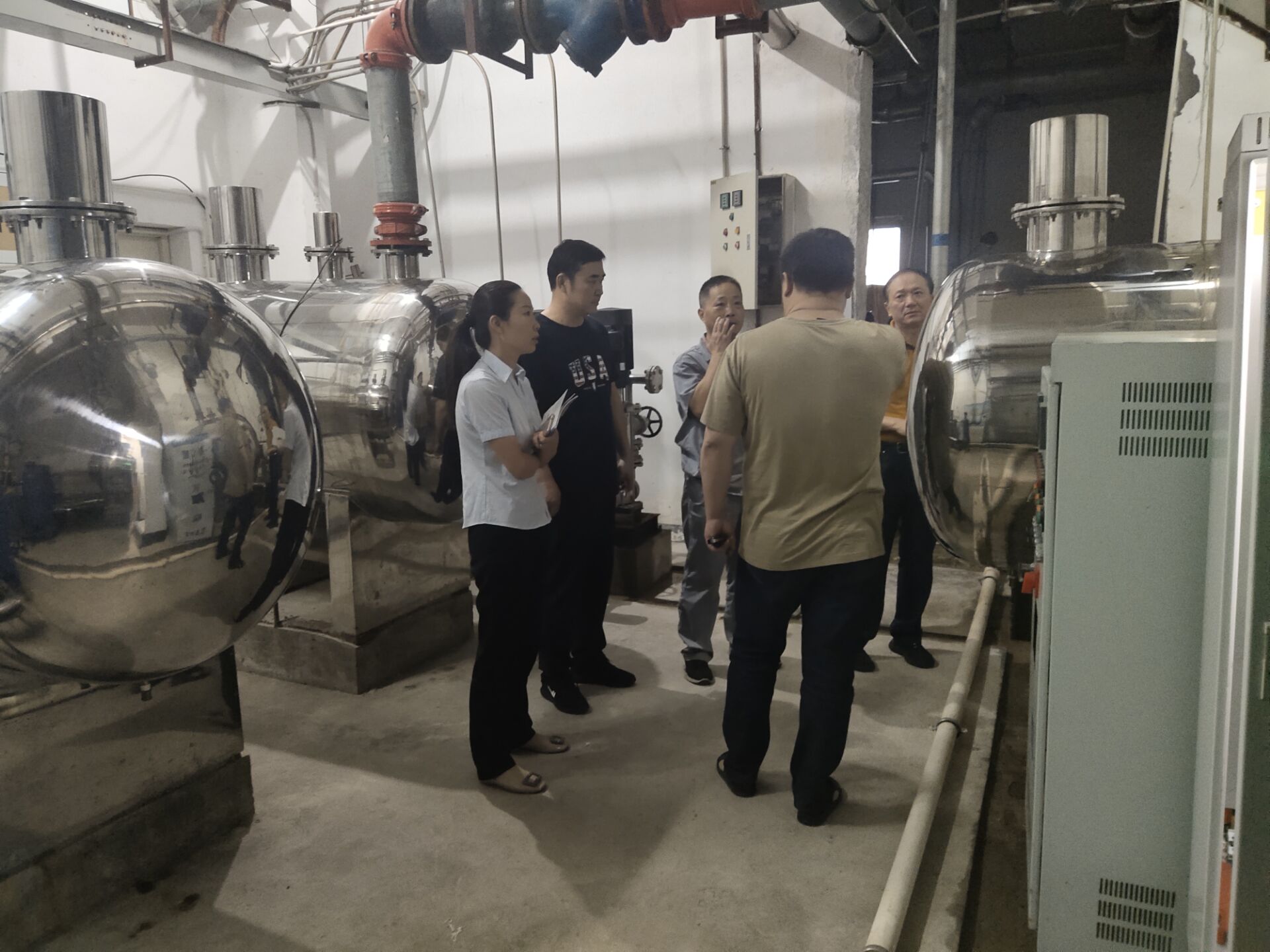 檢查組一行先后查看了泵房消防設備及樓頂保溫箱等消防設備,聽取了后勤公司和維保部門對設施設備的維修保養(yǎng)情況介紹;隨后對職工食堂設施設備、大廈內水循環(huán)系統(tǒng)、配電房設備以及監(jiān)控室設施設備的運轉情況進行檢查;最后,檢查組對大廈外圍存在安全隱患區(qū)域進行了詳細地摸排、巡查。