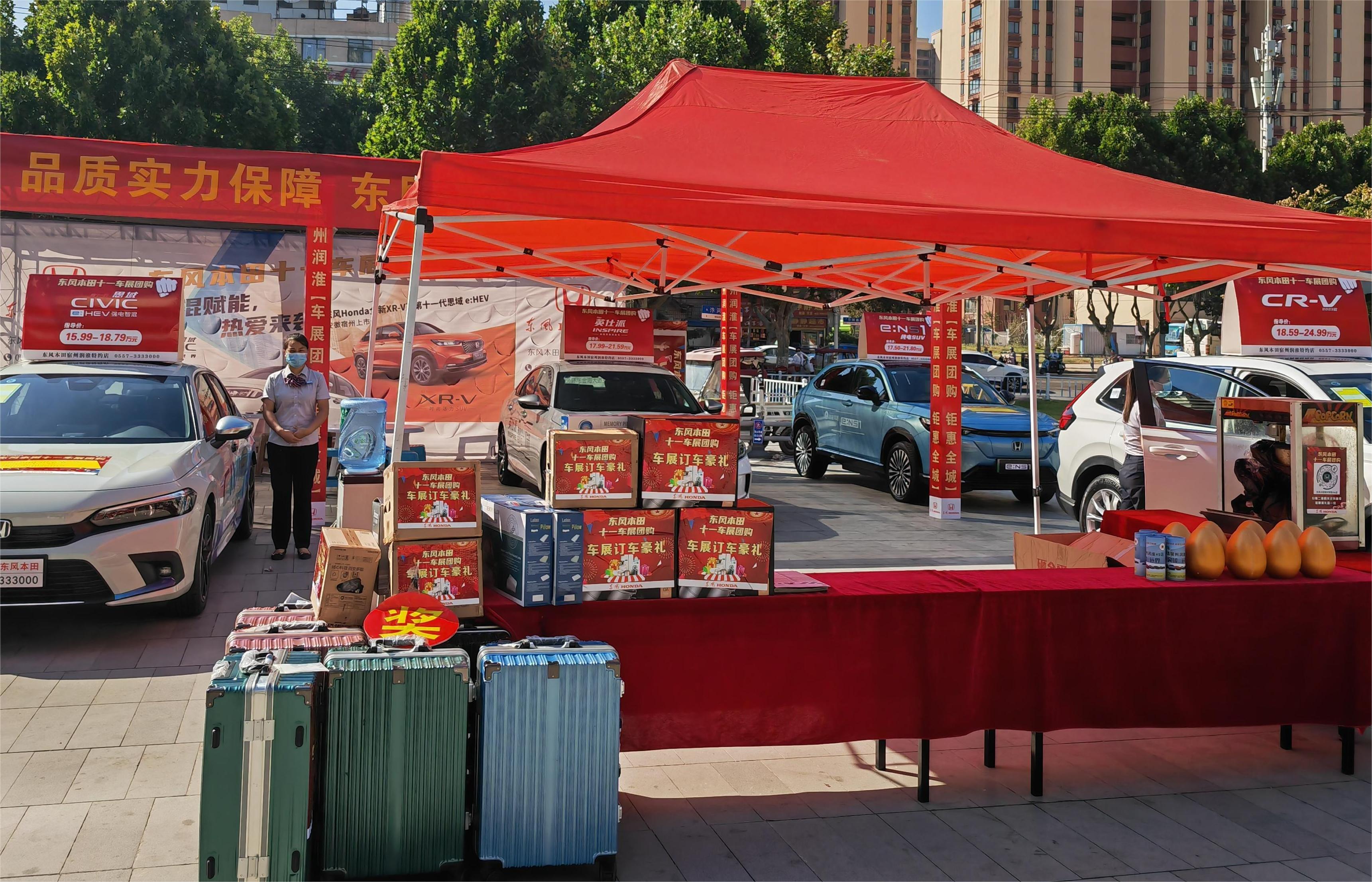為加大新車宣傳力度,節(jié)日期間,潤淮店在當(dāng)?shù)厝肆髁枯^大的商圈舉辦了為期三天的車展,在店內(nèi)舉辦了“東風(fēng)本田·國慶團(tuán)購會”主題促銷活動?;顒悠陂g,凡邀約進(jìn)店試駕ENS1新能源汽車的客戶,贈送精美禮品一份,訂車客戶還可參與“砸金蛋·領(lǐng)好禮”活動。