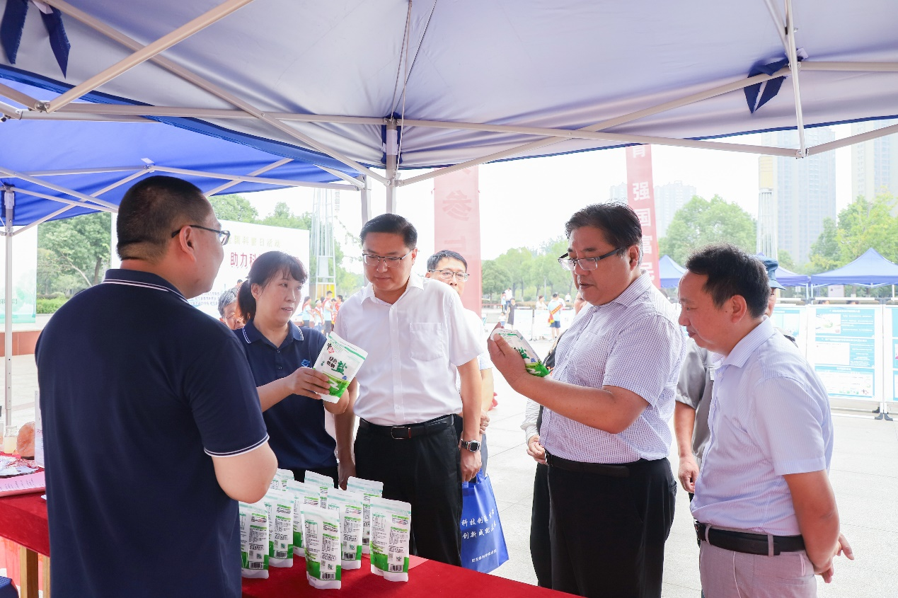 活動(dòng)中,肥東縣委副書記陳濤等領(lǐng)導(dǎo)來到展臺(tái)前,聽取中鹽綠色低鈉鹽介紹。