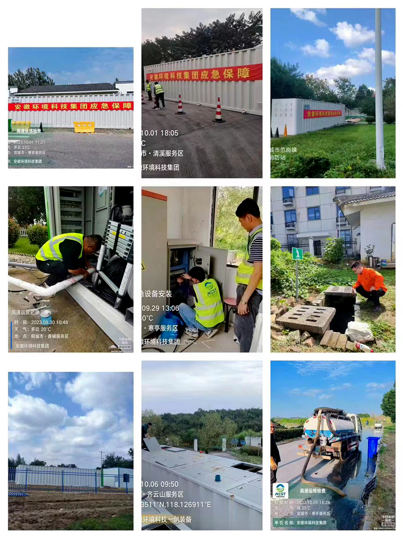 2023年中秋、國慶假期,是安徽省生態(tài)環(huán)境產(chǎn)業(yè)集團(tuán)掛牌后的第一個(gè)長假。為確保全省高速服務(wù)區(qū)污水處理項(xiàng)目假日期間穩(wěn)定達(dá)標(biāo)運(yùn)營,保障人民群眾舒心出行,環(huán)境公司針對全省高速服務(wù)區(qū)高人流量、高運(yùn)維壓力的特點(diǎn),制定兩節(jié)期間運(yùn)維巡檢方案和巡檢值班表,抽調(diào)本部與各子項(xiàng)目公司30余人協(xié)同作戰(zhàn),在人流量大和生態(tài)敏感區(qū)的重點(diǎn)服務(wù)區(qū)安排專人駐場負(fù)責(zé)污水站點(diǎn)運(yùn)維,在各站點(diǎn)提前儲(chǔ)存藥劑和維修物品,同時(shí)緊急調(diào)配三臺(tái)一體化設(shè)備安裝在寒亭、香鋪、清溪三個(gè)大流量服務(wù)區(qū)以策萬全。