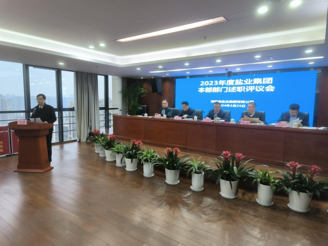 3月25日,鹽業(yè)集團(tuán)召開2023年度本部部門述職評議會,省生態(tài)環(huán)境集團(tuán)黨委委員、副總經(jīng)理,鹽業(yè)集團(tuán)黨委書記、董事長王奇出席會議并講話。鹽業(yè)集團(tuán)黨委副書記、總經(jīng)理、董事宇豐主持會議。