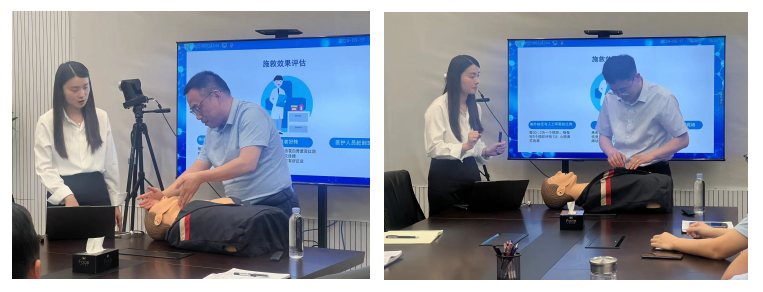 講座中,主講老師詳細(xì)解析了心腦血管的發(fā)病原因、發(fā)病癥狀、表現(xiàn)特點(diǎn)及防控知識,強(qiáng)調(diào)良好的生活習(xí)慣、適度的體育鍛煉、定期體檢等對控制和預(yù)防心腦血管疾病十分有效。同時(shí),主講老師為大家詳細(xì)講解并演示了心肺復(fù)蘇術(shù)(CPR),邀請?jiān)趫雎毠?shí)際操作。