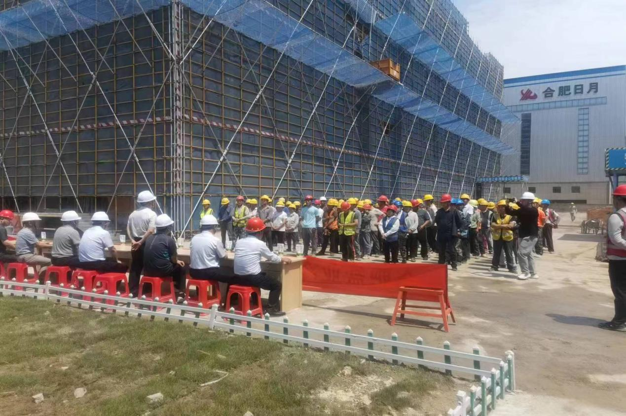 6月3日上午,建設單位合肥市鹽業(yè)公司及代建單位鹽業(yè)地產(chǎn)集團,監(jiān)理單位福建恒禾項目管理有限公司項目部,施工單位安徽楚江環(huán)境建設有限公司項目部,共同開展安全月啟動儀式。項目負責人向工人介紹剩余工程的重大危險源,1、2號樓二層內(nèi)支撐拆除、主體外架拆除及塔吊拆除,重點強調,要注意安全的預防和應對方法,提高工人們的應急處理能力,提高安全意識。