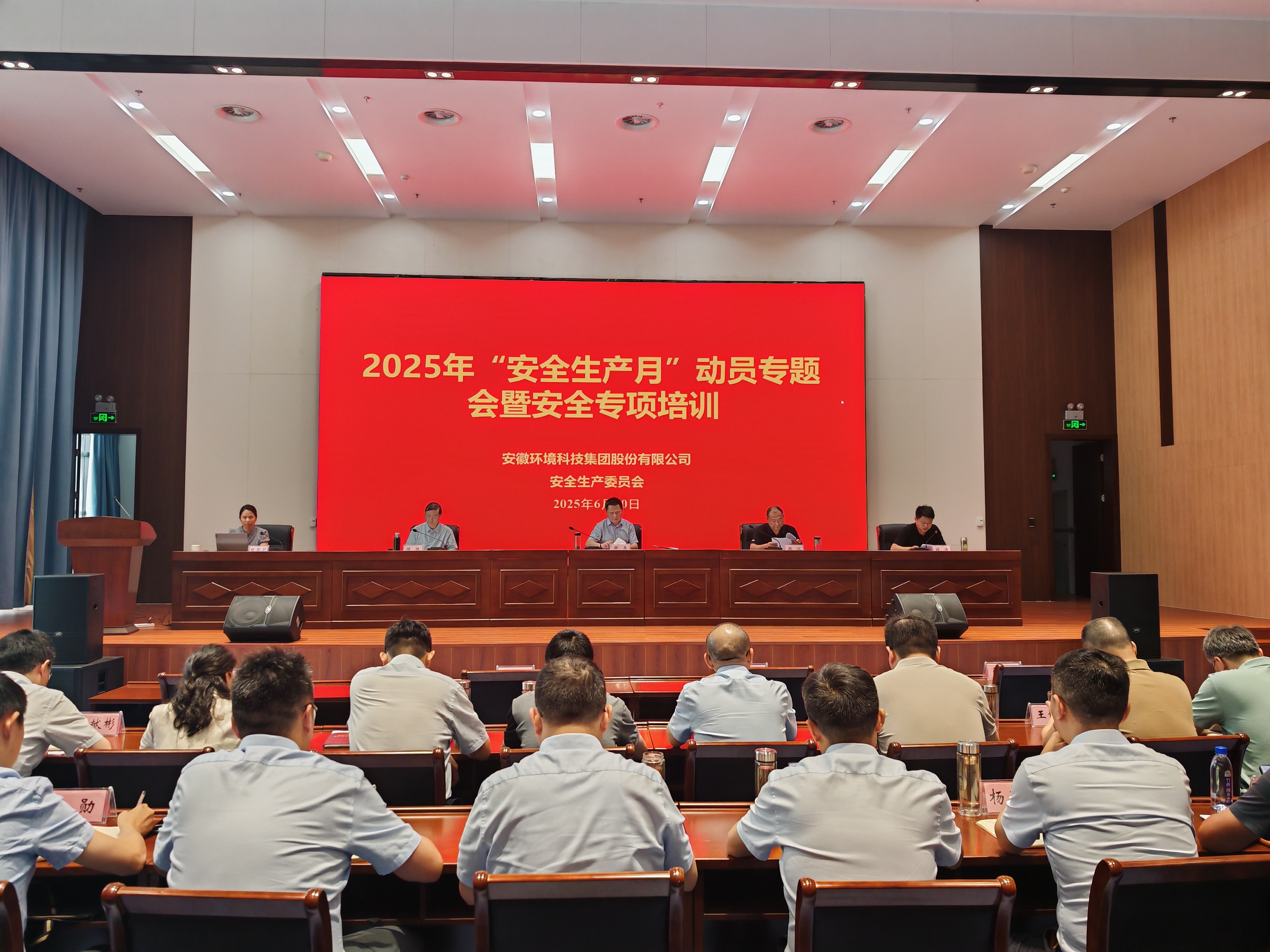 為深入貫徹落實國家關(guān)于安全生產(chǎn)工作的決策部署,強化全員安全意識,壓實安全責(zé)任鏈條,安徽環(huán)境科技集團于6月10日下午隆重召開2025年“安全生產(chǎn)月”動員暨安全專項培訓(xùn)會,正式拉開以“人人講安全、個個會應(yīng)急——查找身邊安全隱患”為主題的安全生產(chǎn)月活動序幕。集團領(lǐng)導(dǎo)班子成員、各部門、各子(項目)公司主要負責(zé)人、分管安全領(lǐng)導(dǎo)及專兼職安全管理人員等百余人現(xiàn)場參會。