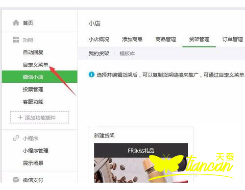 備注:微信小店中有個(gè)貨架功能,可以自定義添加多個(gè)不同的貨架,一個(gè)貨架相當(dāng)于一個(gè)店鋪的首頁。即來開通了微信小店大家都想通過公眾號(hào)的導(dǎo)航菜單能夠直接訪問到我們的小店,但系統(tǒng)又沒有直接可以開通就會(huì)顯示等功能,需要我們手動(dòng)去添加的,下面我們就來介紹一下,微信公眾平臺(tái)的自定義菜單上如何連接微信小店