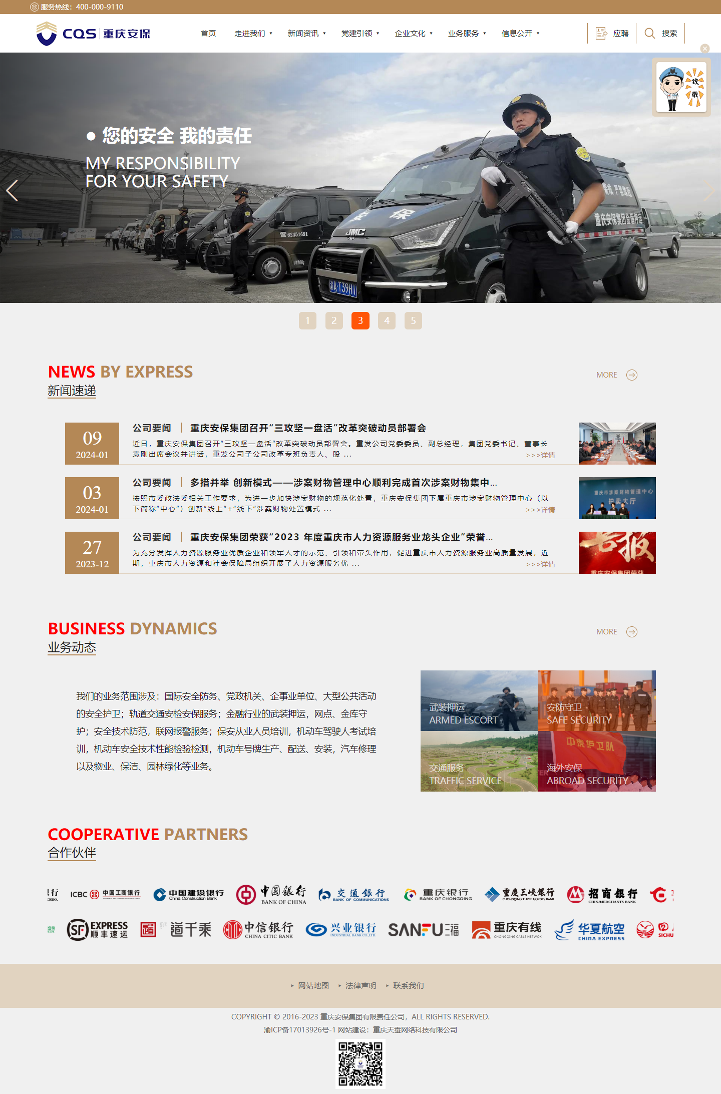 天蠶 重慶網(wǎng)絡(luò)公司小編語: 重慶安保公司成立于2011年8月,主要從事保安服務(wù)、勞務(wù)派遣、物業(yè)管理、安全技術(shù)防范系統(tǒng)設(shè)計(jì)施工、視頻監(jiān)控安裝及維保服務(wù);提供安防智能一體化解決方案。公司遵循“積極防衛(wèi)、安全第一、優(yōu)質(zhì)服務(wù)、信譽(yù)至上”的服務(wù)理念,致力于維護(hù)社會(huì)治安、維護(hù)公共安全、發(fā)揮重要輔警作用。